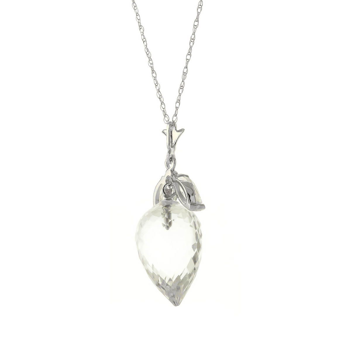 White Topaz Pendant Necklace handcrafted in solid white gold. Three gemstones, total 12.75 ct. Pointed briolette cut. The pendant is suspended from a white gold double link rope chain with spring clasp. Size: 10.2 x 27.9 mm (0.4 x 1.1 in). Material: 9ct White Gold. Total metal weight: 3.94 gr. 1 pointed briolette cut white topaz (15 x 10 mm) = 12.25 ct. 2 marquise cut white topaz (6 x 3 mm) = 0.5 ct total. Colour: White. Stone cut: Pointed Briolette Cut. Anniversary: 4th Anniversary. Birthstone: November.