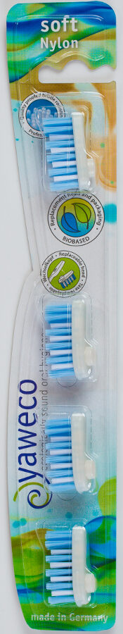 These vegan friendly replacement heads for Yaweko toothbrushes are made of nylon with soft rounded bristles and low and high bristle groups to effectively clean the back teeth. Simple to use this toothbrush head can be removed by pressing the white